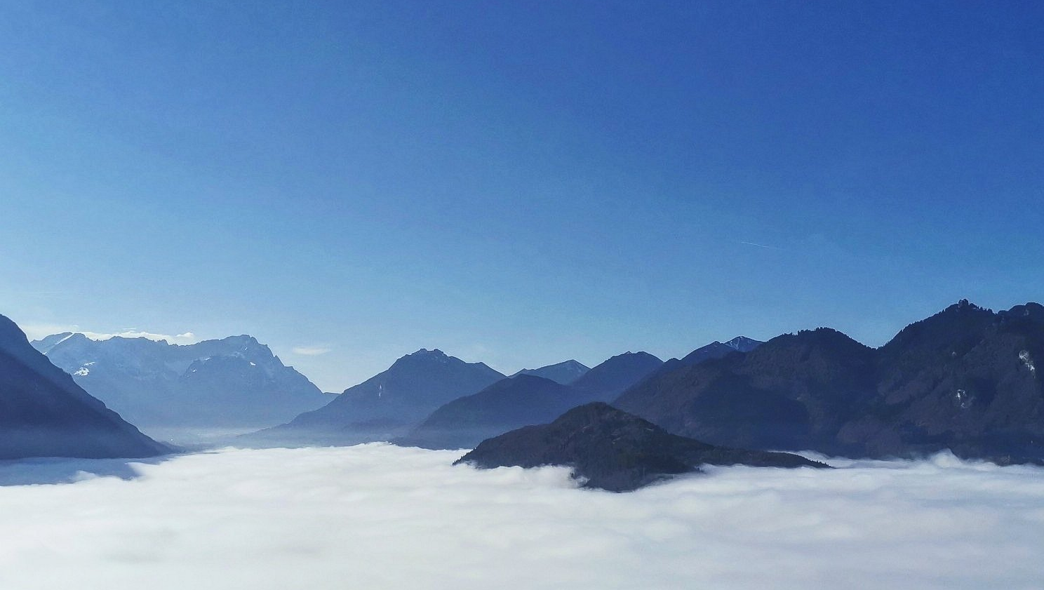 Auch wenn sich die Höhe nicht sonderlich anhört, hat man an freien Tagen eine bombastische Sicht auf die Zugspitze, Garmisch und zur linken die Flanke des Estergebirges.