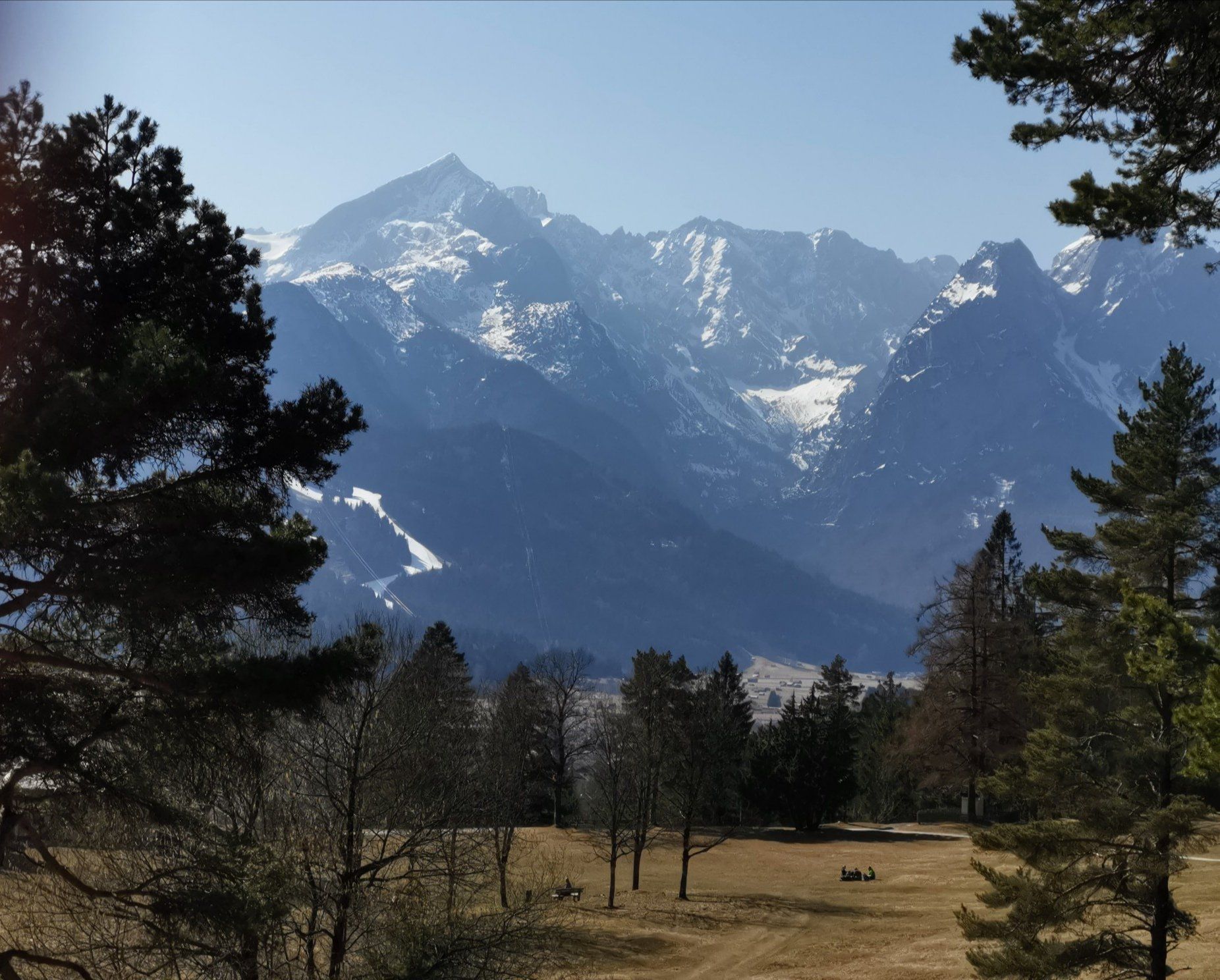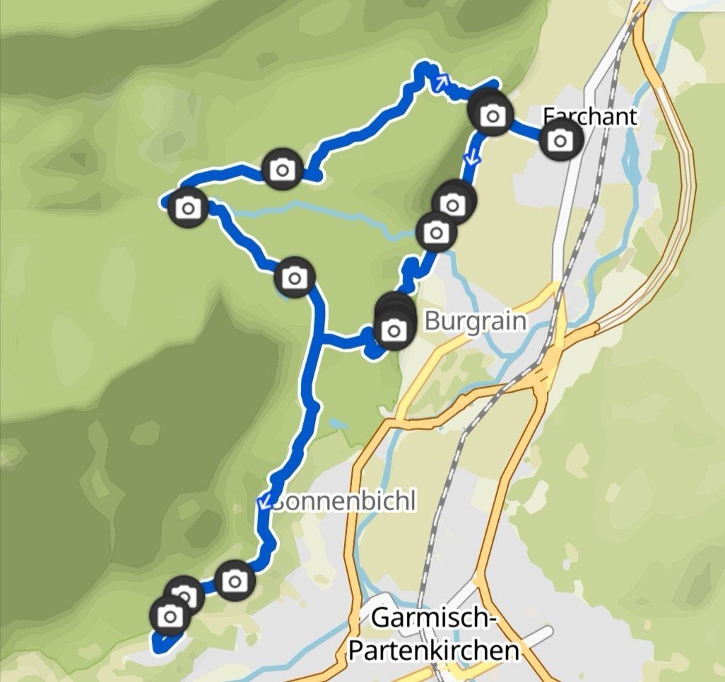 Von dort hat man einen schönen Blick über Garmisch-Partenkirchen, Ester-und Wettersteingebirge. Von dort aus gehen wir weiter über den Kramerplateauweg zur Windbeutelam und dann ein Stück des selben Weges zurück.Vorbei am Pflegersee, über die Reschbergwiesen und über die Spieleiten zurück nach Farchant.